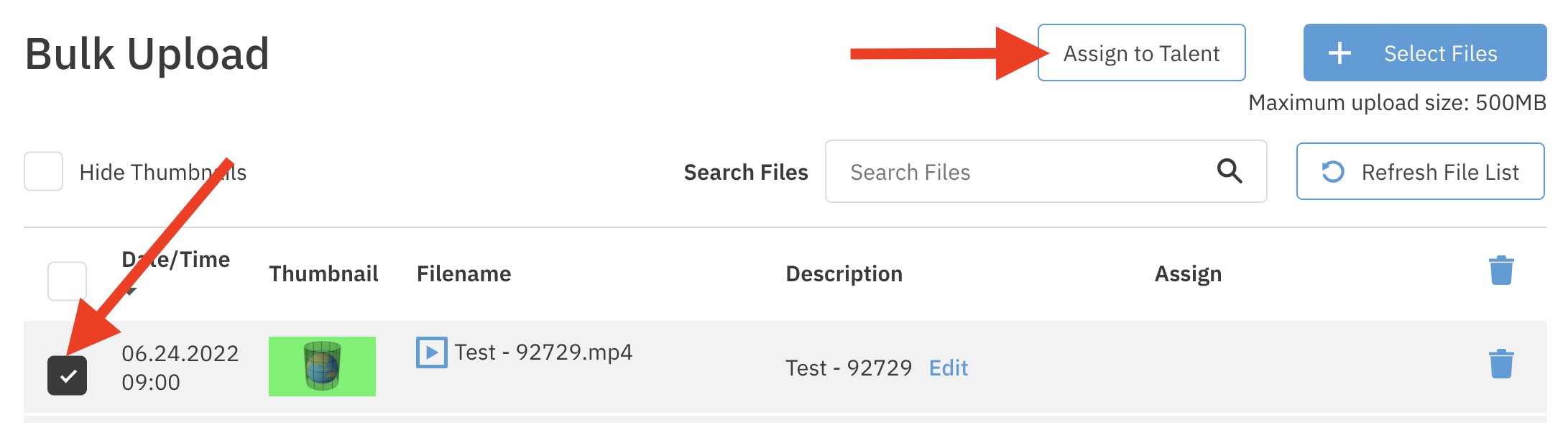 NOTE: You can assign multiple videos to the same talent at once, just check off all of the videos you want to assign at the same time.
