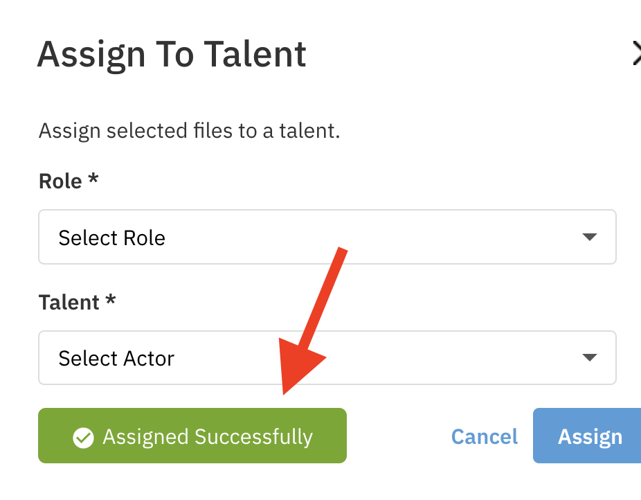 Look for the green Assigned Successfully label to the left of the blue Assign button to confirm that the video was assigned to the talent of your choosing.