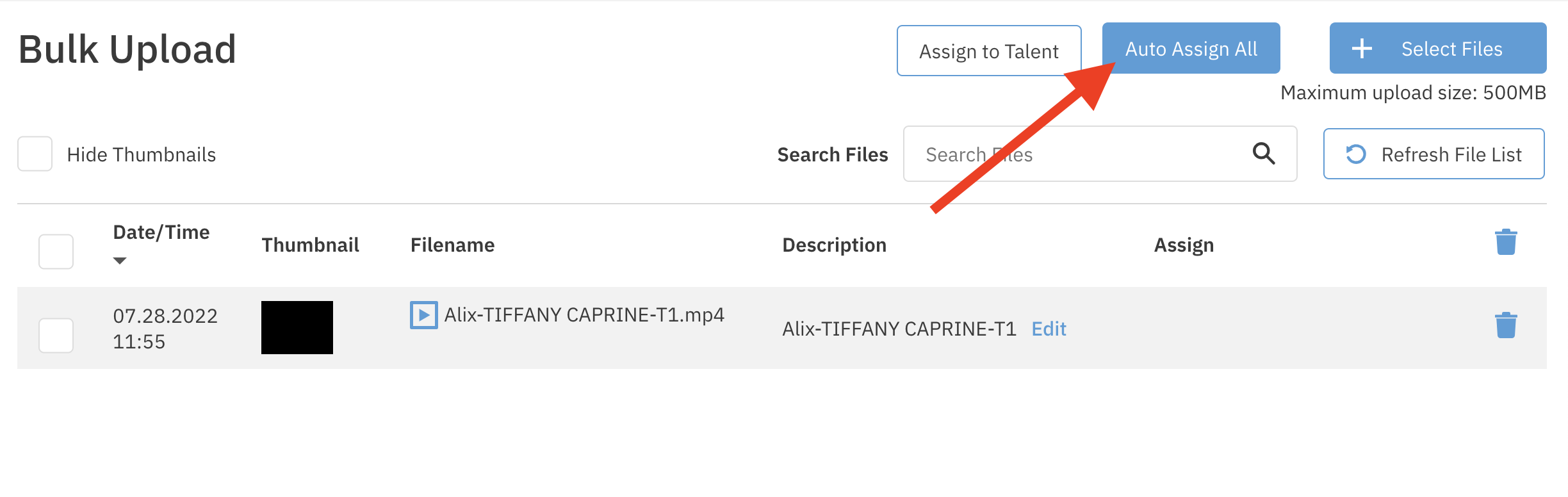 NOTE: You must clear the bulk uploader first before using auto assign, otherwise the system will re-auto-assign previously uploaded clips.