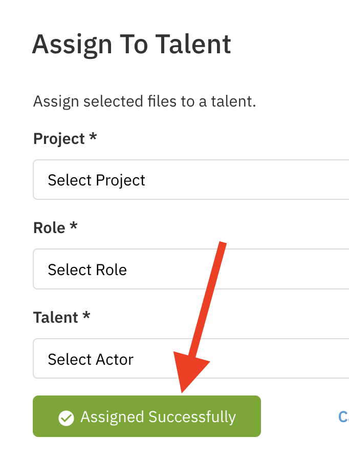 Look for the green Assigned Successfully label to confirm that the video was assigned to the talent of your choosing.