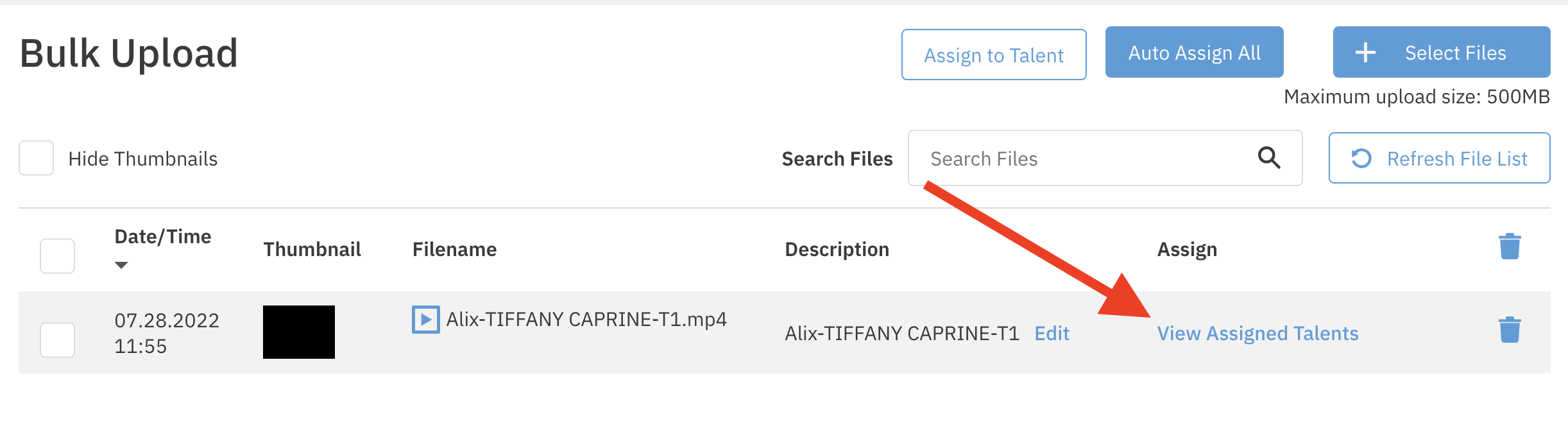 Once the videos are assigned, you will see the label View Assigned Talents.