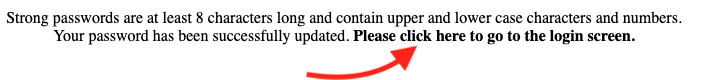 Once you have entered an acceptable password, select Reset Password. After selecting this, you will be prompted to return to the login screen.