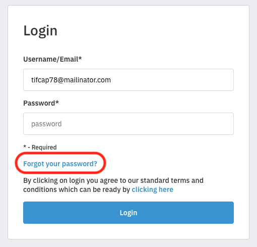 Navigate to the login screen. Enter the email address or username associated with your account, then select Forgot Your Password?.