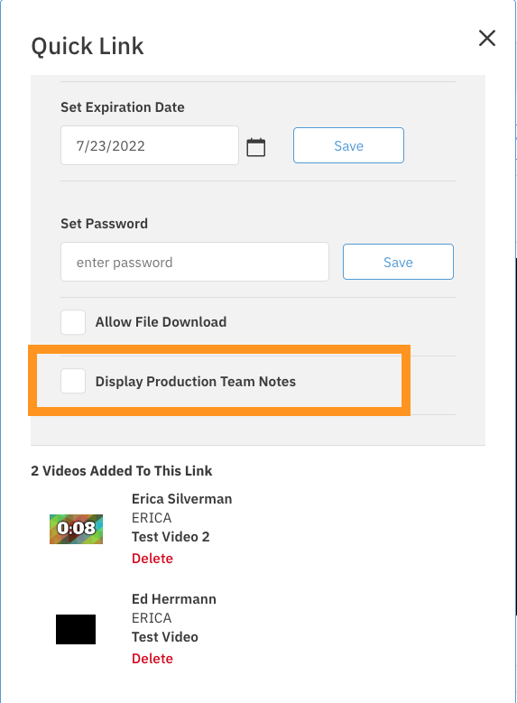 NEW - "Display Production Notes" Option added to "Open Quick Link" modal