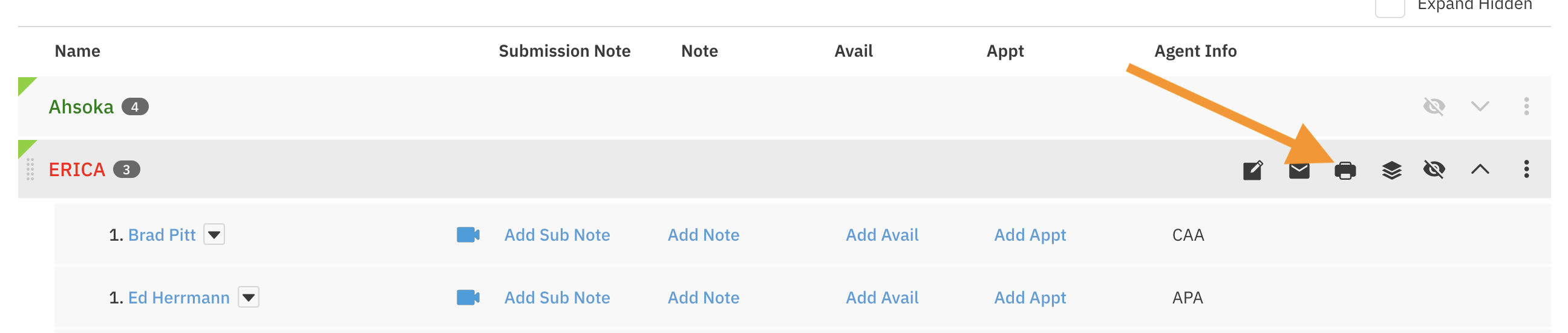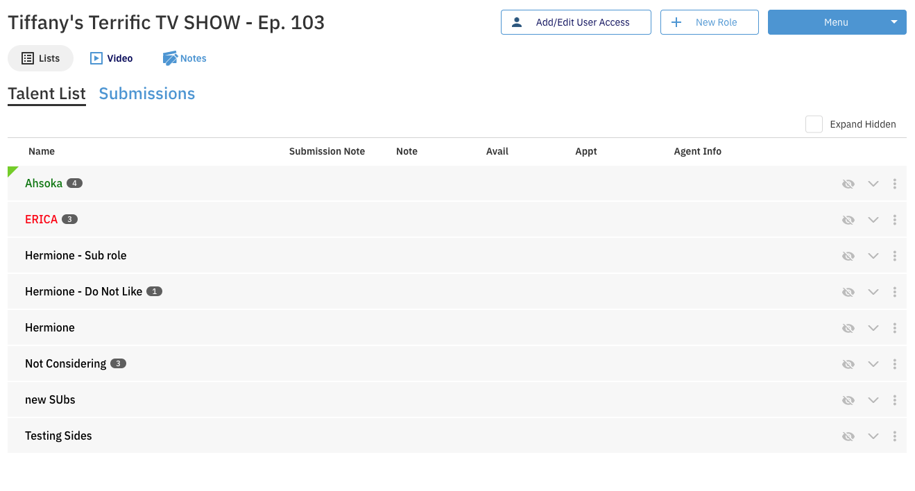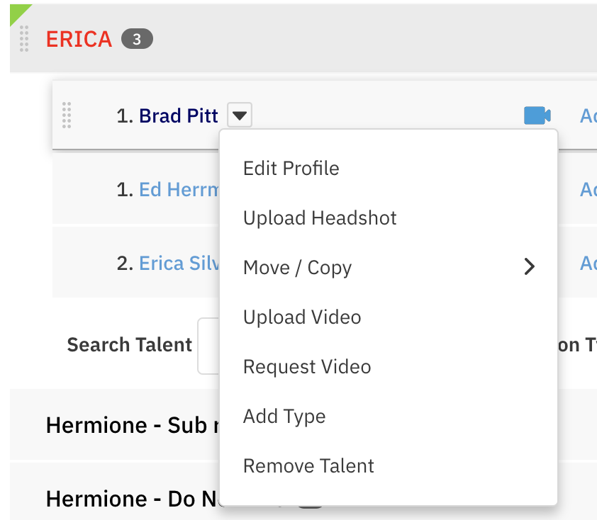 "Print List" and "View Video Notes" from top of each talent list have moved into the role list