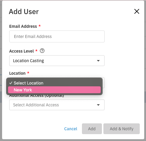 When adding a user set the Access Level to Location Casting.