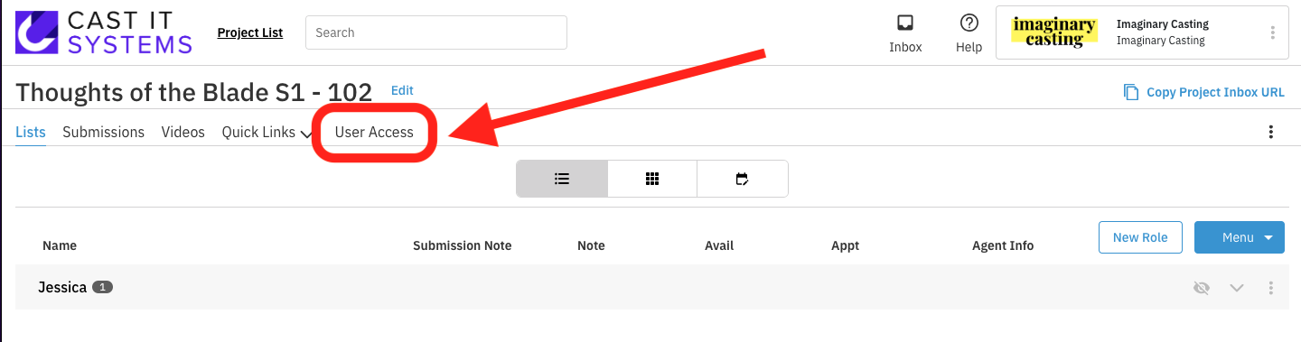 Select the User Access Button located in the Project Menu.