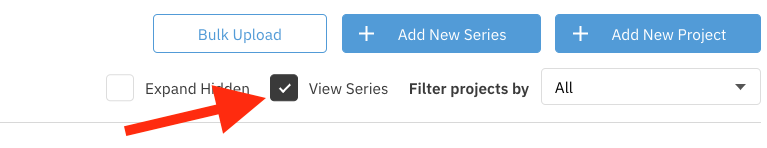 You should now see the new series populate on your page. You can toggle between viewing your projects and series separated or intermixed by clicking the View Series button.