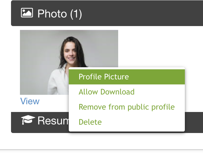 If you are selecting an image in the Photo section, you will see an option to set the photo as the primary profile headshot.
