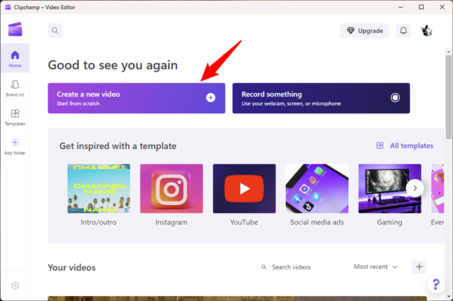 Launch Clipchamp - Video Editor and click or tap the “Create a new video” button from its dashboard. (This program is preinstalled on Windows 11 but can be downloaded and installed from the Microsoft Store.)