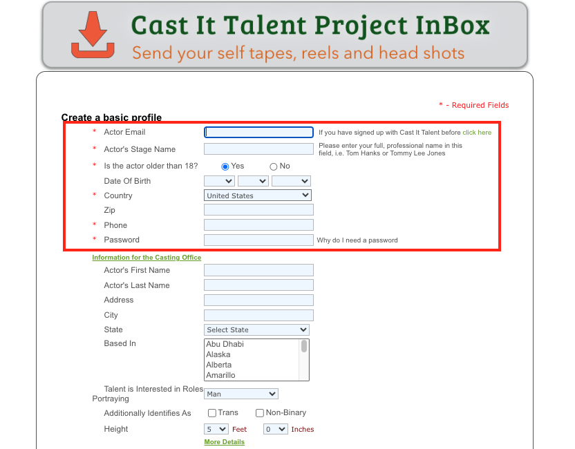 This article guides new Talent through the process of registering and submitting an audition to an Open Call project link. Follow these instructions to create your account and upload your materials smoothly.
