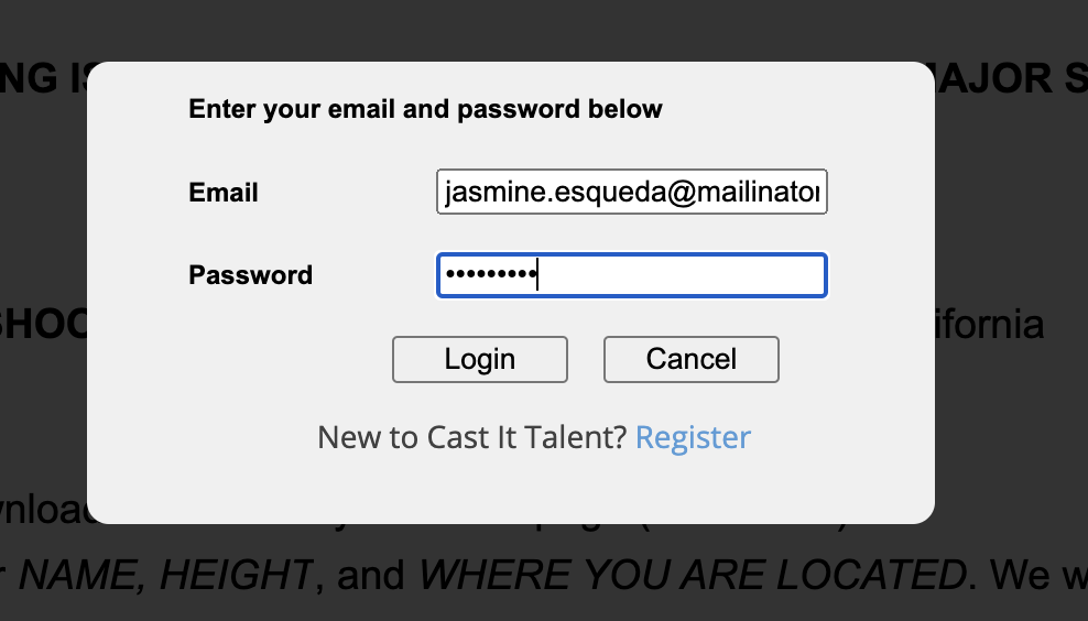 Submit as Talent (Login with your Credentials)