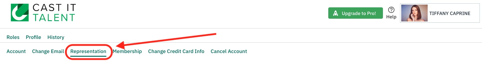 You are able to add or remove representation from your account at any time. This article explains how Talent can update their profile with their current Agent or Manager information to ensure the correct representatives are linked to their account.